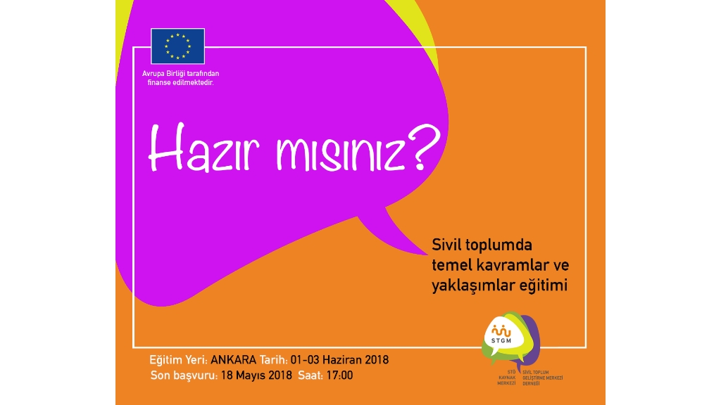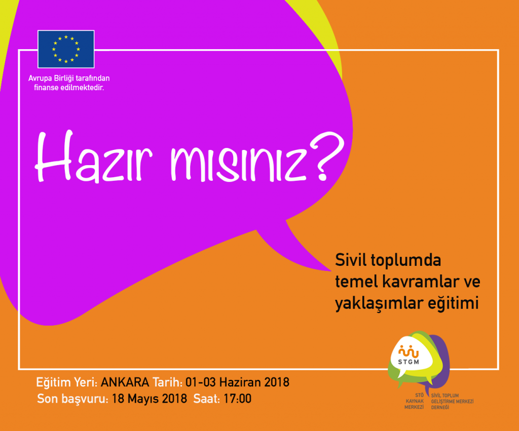 STGM’nin yürütücüsü olduğu, Avrupa Birliği tarafından finanse edilen STÖ Kaynak Merkezi Projesi kapsamında düzenlenen “Sivil Toplumda Temel Kavramlar ve Yaklaşımlar” eğitimi için başvurular açıldı.