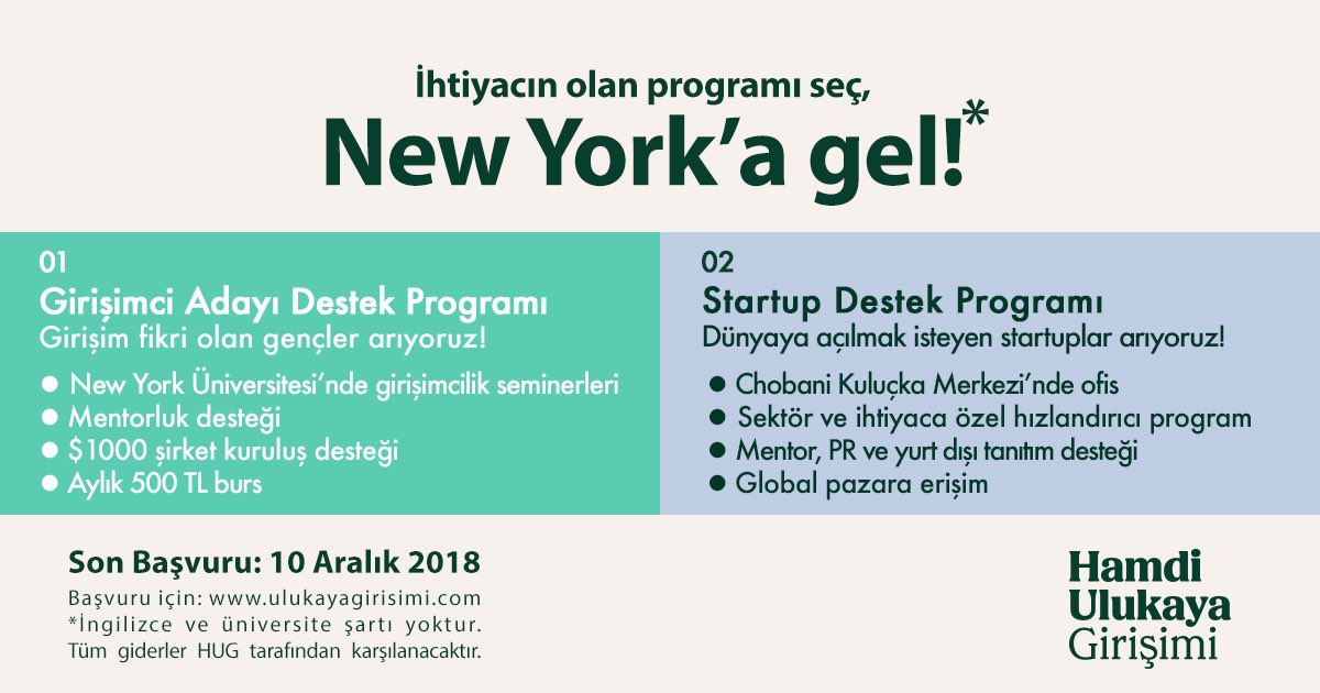 Her yıl Girişimci Adayları ve Startupları New York’ta ağırlayan HUG, yeni dönemde de Türkiye’nin dört bir yanından şirket kurma hayali olan girişimci adaylarını ve dünyaya açılmayı planlayan startupları arıyor. Üniversite ve İngilizce şartı bulunmayan programa başvurular 10 Aralık 2018’e kadar sürecek.