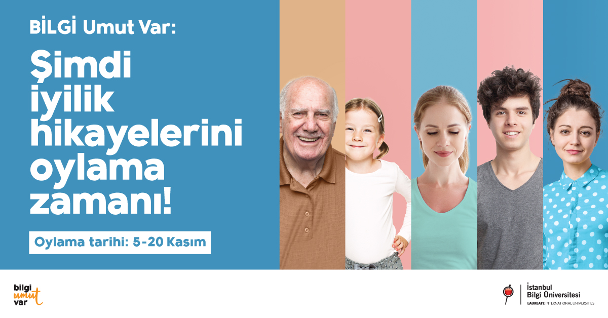 İstanbul Bilgi Üniversitesi bu yıl ilk kez iyilik hikâyelerinin desteklenmesi ve toplum tarafından bilinirliğinin artmasına katkıda bulunmak amacıyla “BİLGİ Umut Var”ı düzenliyor. “BİLGİ Umut Var” ile insanlığa umut, cesaret veren, ilham kaynağı olan iyilik hikâyeleri paylaşılıyor