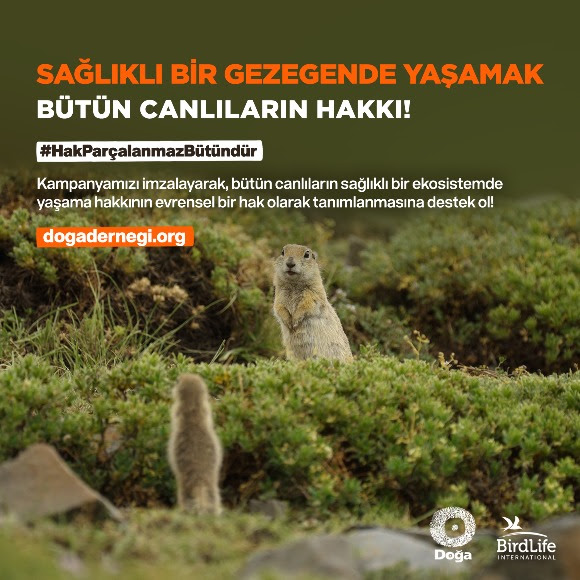 Dünyanın en büyük doğa koruma ağlarından birisi olan Dünya Kuşları Koruma Kurumu’nun (BirdLife International) farklı ülkelerdeki ortaklarıyla birlikte yürüttüğü 1 Planet 1 Right Kampanyası, Türkiye’de “Hak parçalanmaz bütündür.” sloganıyla devam ediyor. Sağlıklı bir ekosistem içerisinde yaşama hakkının en temel insan haklarından birisi olduğunu vurgulayan yüz binlerce doğa sever, Birleşmiş Milletler’den sağlıklı bir doğal çevrede yaşama hakkının İnsan Hakları Evrensel Beyannamesi’ne dahil edilmesini talep ediyor.