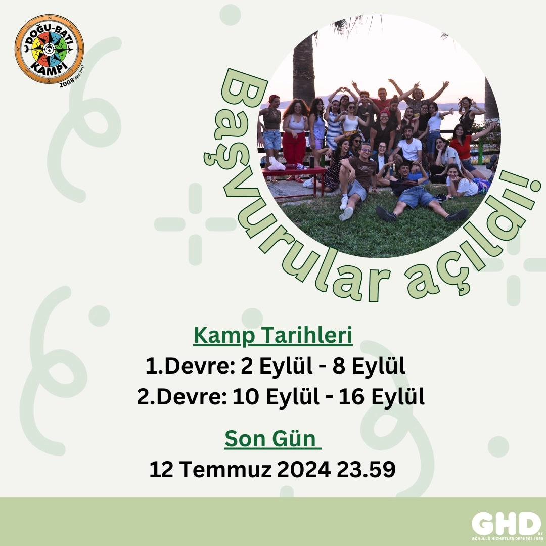 Bu sene 2 Eylül – 8 Eylül 2024 ve 10 Eylül – 16 Eylül 2024 tarihleri arasında İzmir Afacan Gençlik Evi’nde gerçekleşecek olan Doğu Batı Kampı’nın başvuruları açıldı!