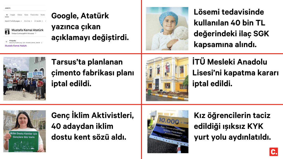 Change.org Türkiye Direktörü Didem Korkut yılın ilk yarısında 36 imza kampanyası başarıyla sonuçlanması başarıya ulaşmasıyla ilgili olarak “Demokratik süreçlerin güçlenmesine katkıda bulunan imza kampanyaları, halkın taleplerinin karar vericilere iletilmesinde önemli bir rol oynuyor. Halkın değişim taleplerinin karşılık bulduğunu görmek de sevindirici. Bireylerin seslerini duyurabileceği ve kolektif olarak etkili değişimler yaratabileceği bir platformu 12 yıldır ücretsiz olarak sunuyor olmaktan mutluyuz.” yorumunda bulundu.