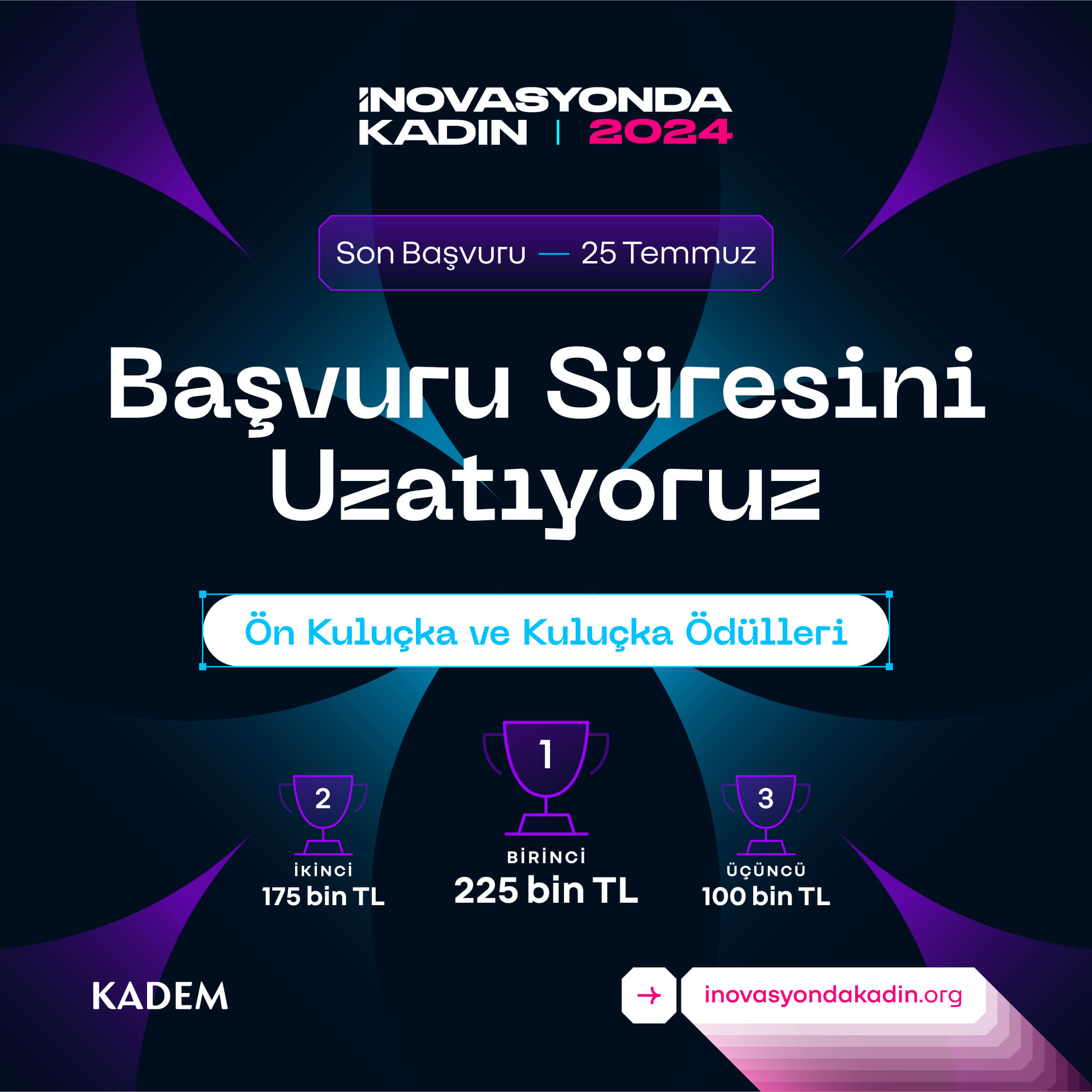 Kadın ve Demokrasi Vakfı (KADEM) öncülüğünde düzenlenen “İnovasyonda Kadın” projesinde başvuru süresi 25 Temmuz’a kadar uzatıldı. Bu yıl sekizincisi düzenlenen proje ile kadın girişimcilerin desteklenmesi hedefleniyor.