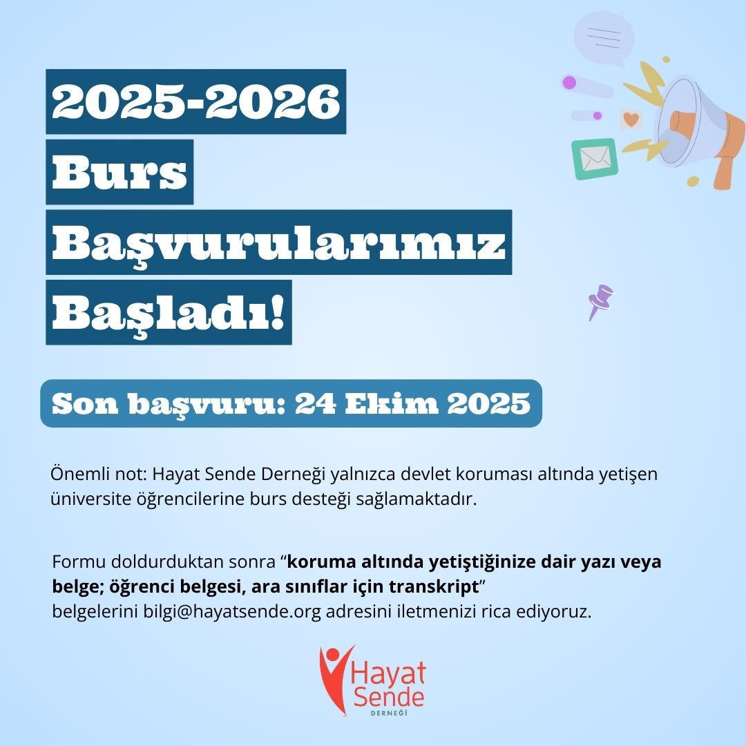Formu doldurduktan sonra “koruma altında yetiştiğinize dair yazı veya belge; öğrenci belgesi, ara sınıflar için transkript” belgelerini bilgi@hayatsende.org adresine iletiniz.