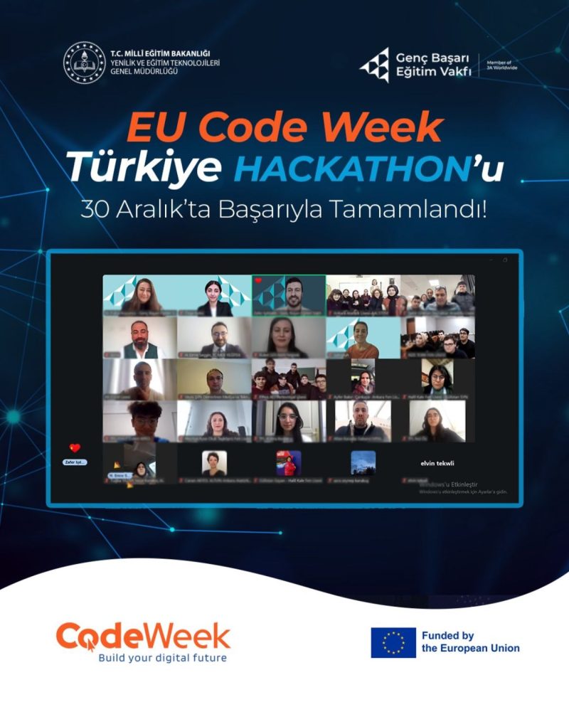 Kodlama, dijital üretim ve sosyal etkiyi bir araya getiren EU Code Week Türkiye Hackathonu, Millî Eğitim Bakanlığı Yenilik ve Eğitim Teknolojileri Genel Müdürlüğü (YEĞİTEK) ve Genç Başarı Eğitim Vakfı iş birliğiyle 30 Aralık 2025 tarihinde çevrim içi olarak gerçekleştirildi.